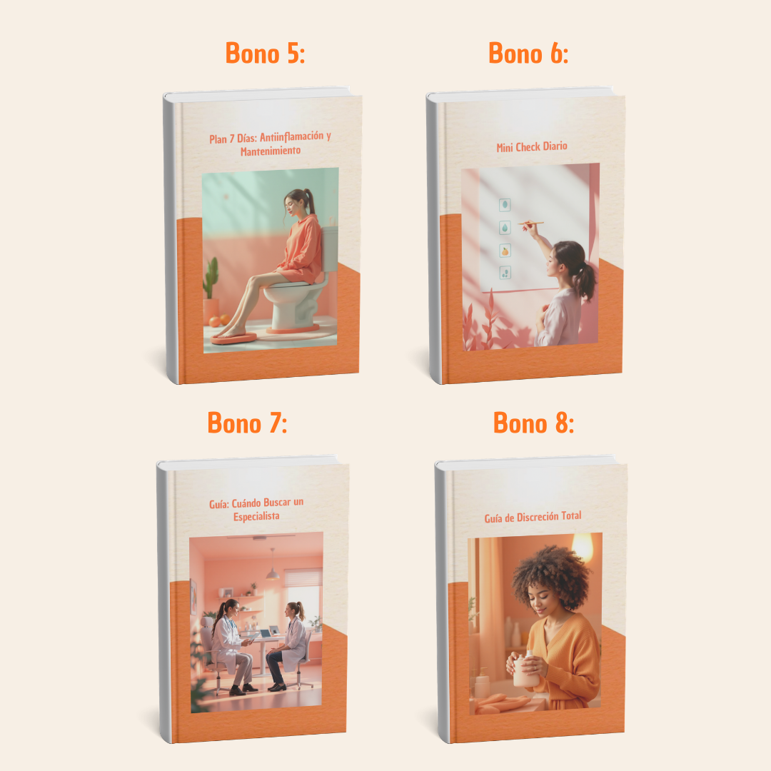"Tenía molestias constantes y no sabía qué hacer. Este ebook explica todo de forma simple y sin vergüenza. Ahora tengo herramientas para aliviar los síntomas rápido."